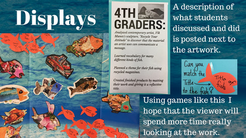 This sample 3rd-5th grade unit gives a sense of how I structure lessons, promote critical thinking and engagement in cross disciplinary themes, and promote self expression and good craftsmanship in the work of my students. The concept of Junk Mail Fish was developed by one of my education mentors, Constance Del Nero who created many wonderful art units for the Academy Art Museum as their education director.